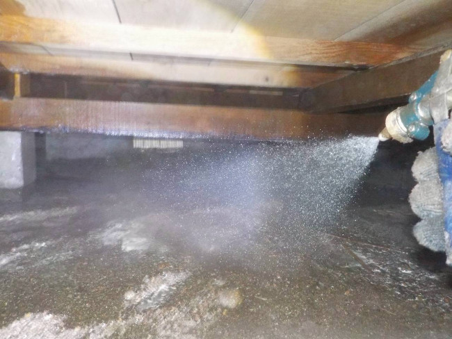 こんにちは営業の小川です今日は先日施工した防蟻工事(シロアリ駆除)の床下での施工の様子をご紹介致します。