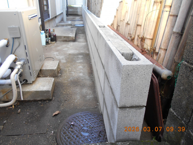 フェンスが風圧に耐えれるように、まずは基礎となるブロックを3段設置します。