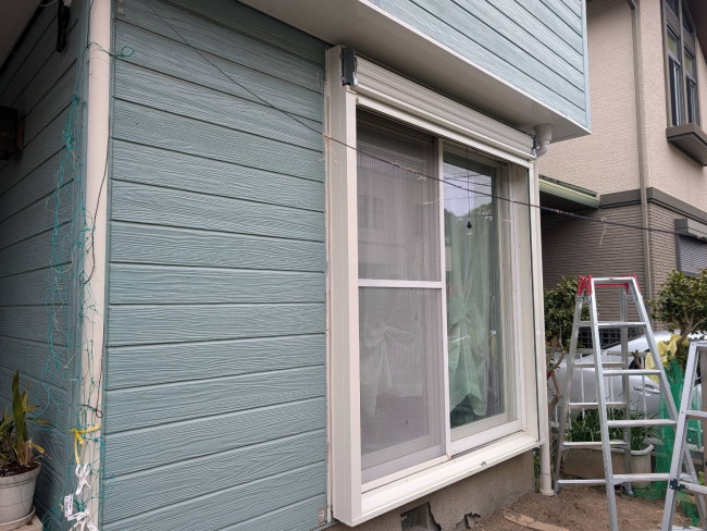 既存の雨戸の枠が付いていた箇所の新築時の外壁が露出してしまいます。