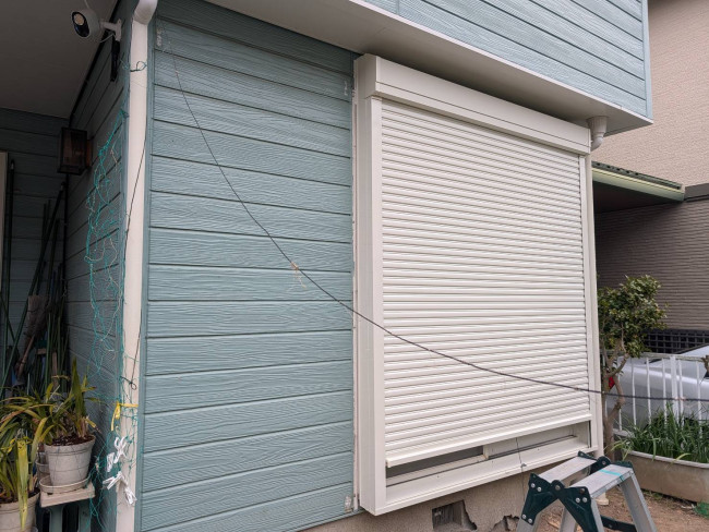 メーカー住宅の特殊な雨戸でしたので雨戸のみの交換が出来ず、新規に雨戸取付かこの際シャッターにするか迷われて