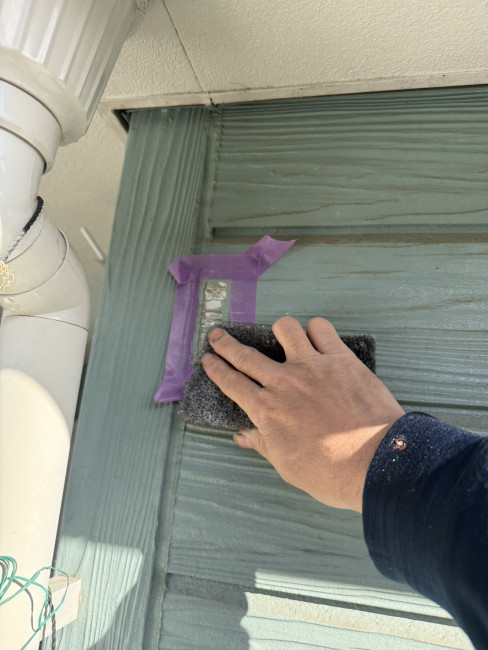 原状の外壁の色に合わせて調色してタッチアップ塗装して工事完了です。